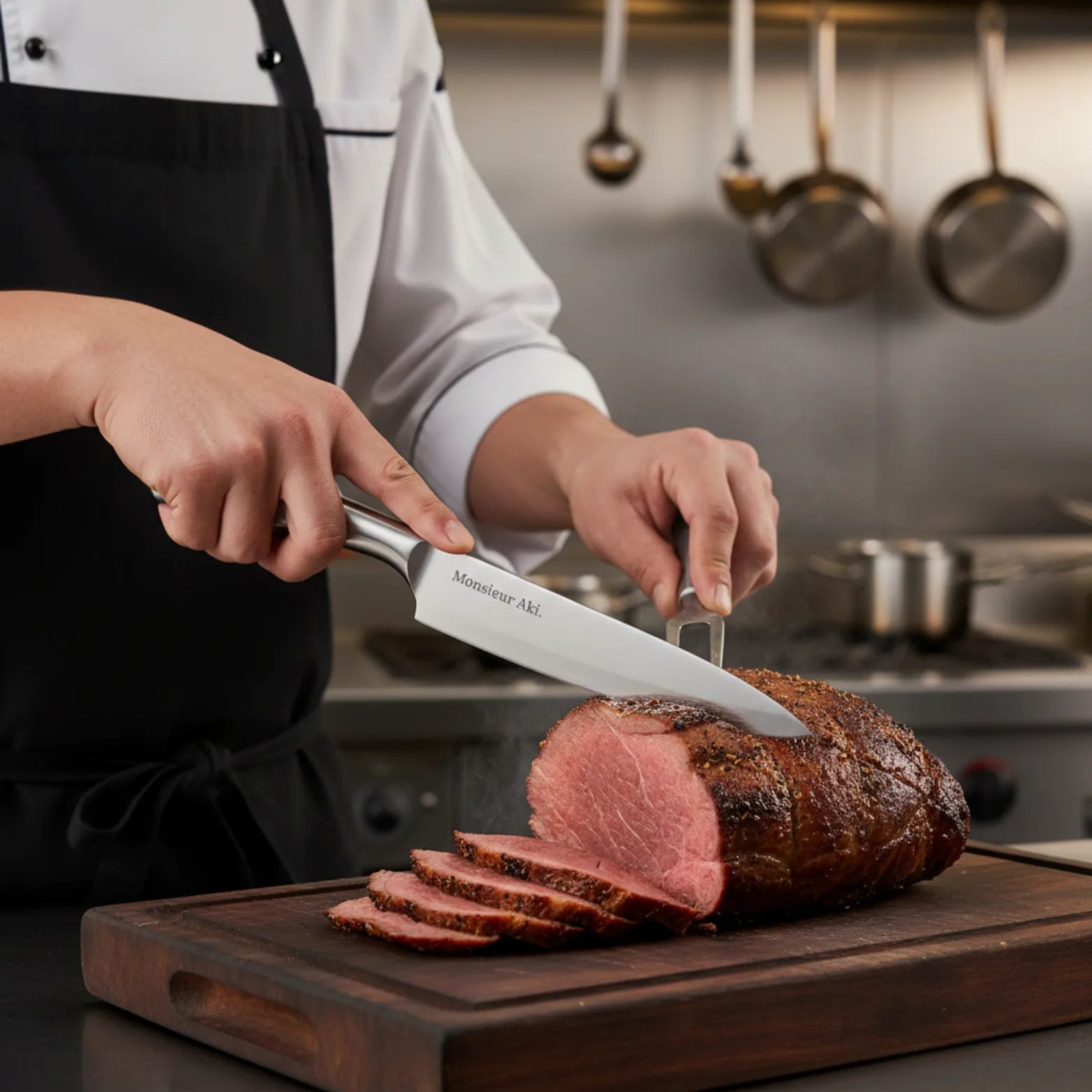 Le set de 5 couteaux japonais de la collection Full Acier, signé Monsieur Aki, réunit les indispensables pour une cuisine moderne. Forgés entièrement en acier inoxydable, ces couteaux allient robustesse et design épuré. Du couteau de chef polyvalent au couteau d’office pour les découpes plus fines, chaque lame est conçue pour apporter précision et confort d’utilisation. Leur conception monobloc garantit solidité et entretien facile, tout en apportant une touche contemporaine à votre cuisine.